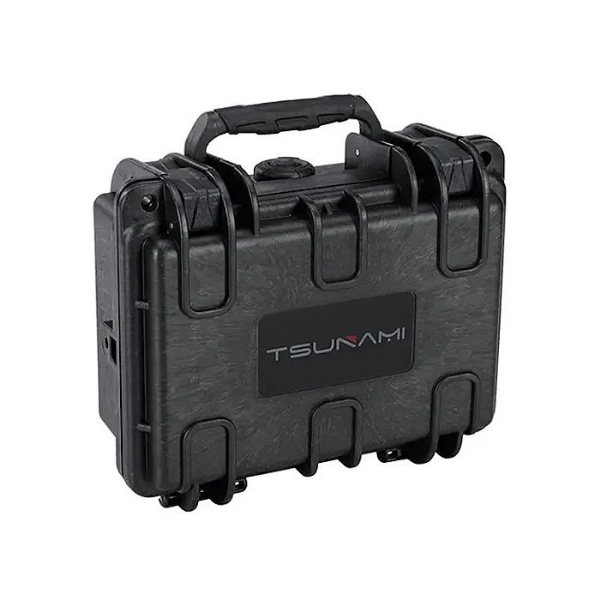 Our Tsunami Utility High-Impact Case - 219x185x104mm is custom-designed for professional collectors or manufacturers who require a superior storage option for fragile and precious items, including watches, cameras, audio mixers, and various other valuable equipment. Featuring internal foam cushioning for extra precaution and an IP67 rating signifying its capacity to withstand water immersion for half an hour at a depth of 1 meter, this case provides unparalleled safeguarding for your treasured gadgets.